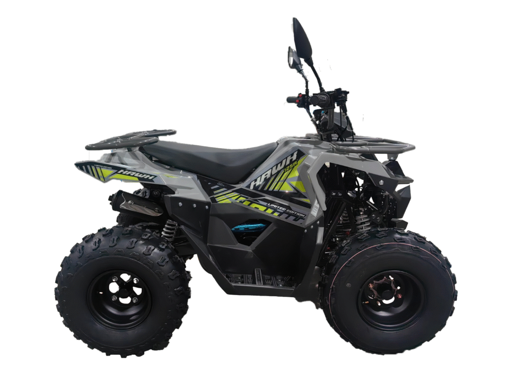 The HAWK 125R is a compact and powerful ATV designed especially for thrill-seekers who love off-road adventures. Equipped with a robust 125cc single-cylinder engine and a durable frame, this quad offers exceptional riding experience, combining comfort, safety, and maneuverability. Perfect for both teenagers and adults, it adapts effortlessly to leisure rides or challenging terrains, making every journey exciting and reliable.
